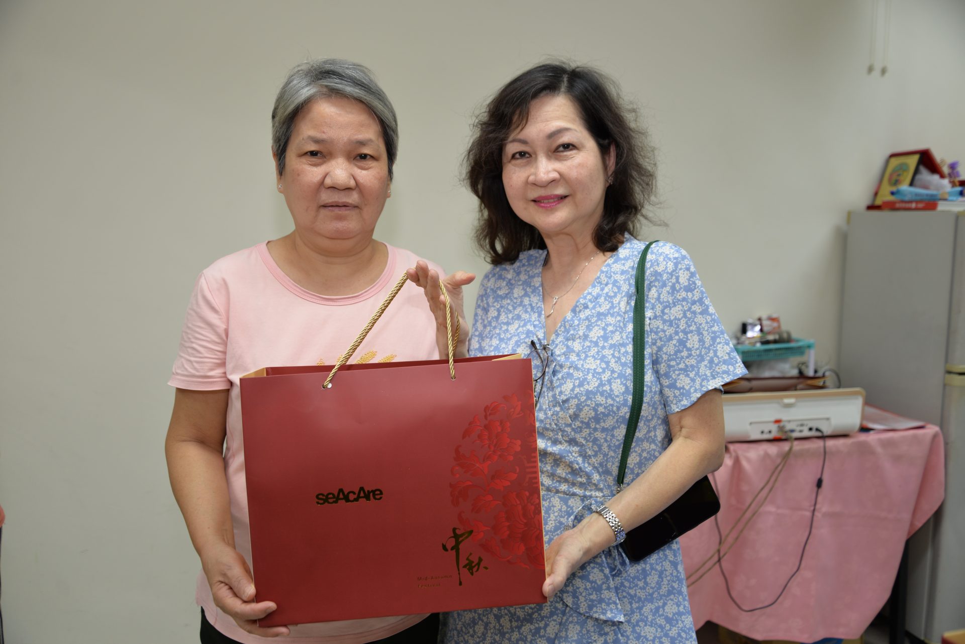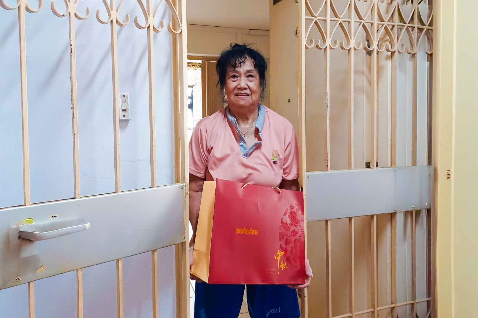 Organising Chairperson Kathryn Ang joined the effort, personally handing out mooncakes and spending time with residents. Her visit added a warm, personal touch to the outreach and reflected the genuine connections that had been built between Seacare, SOS and the community.