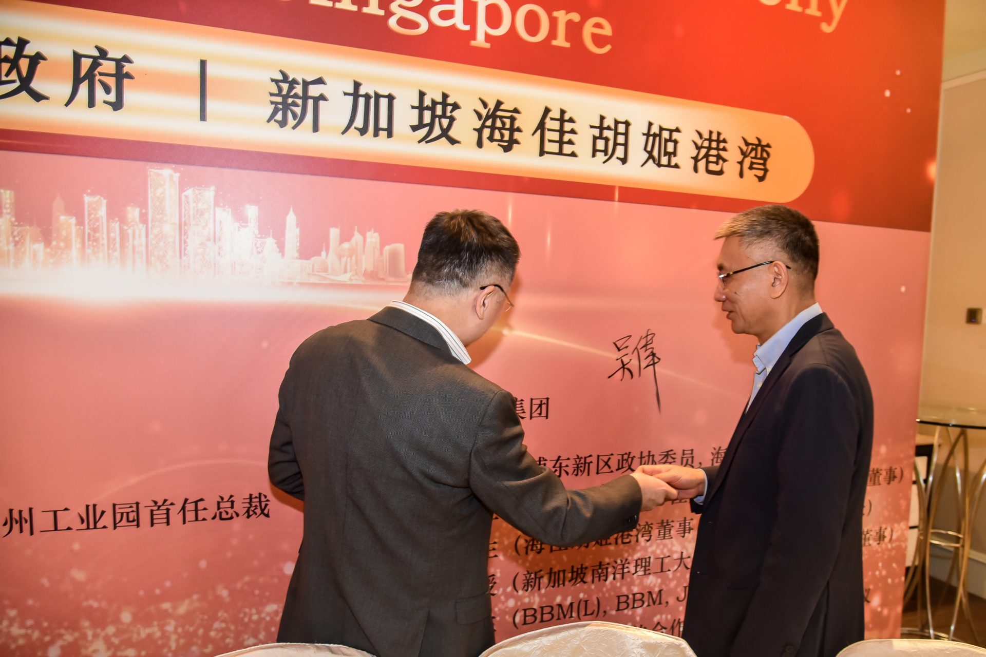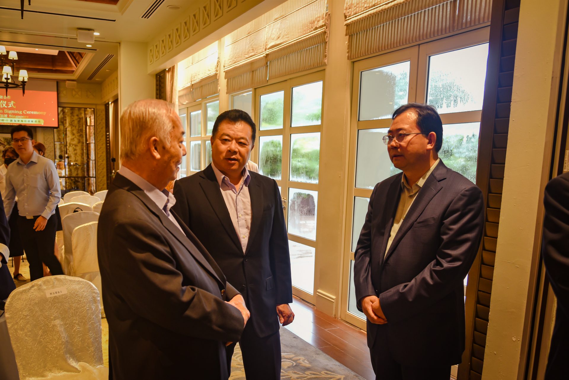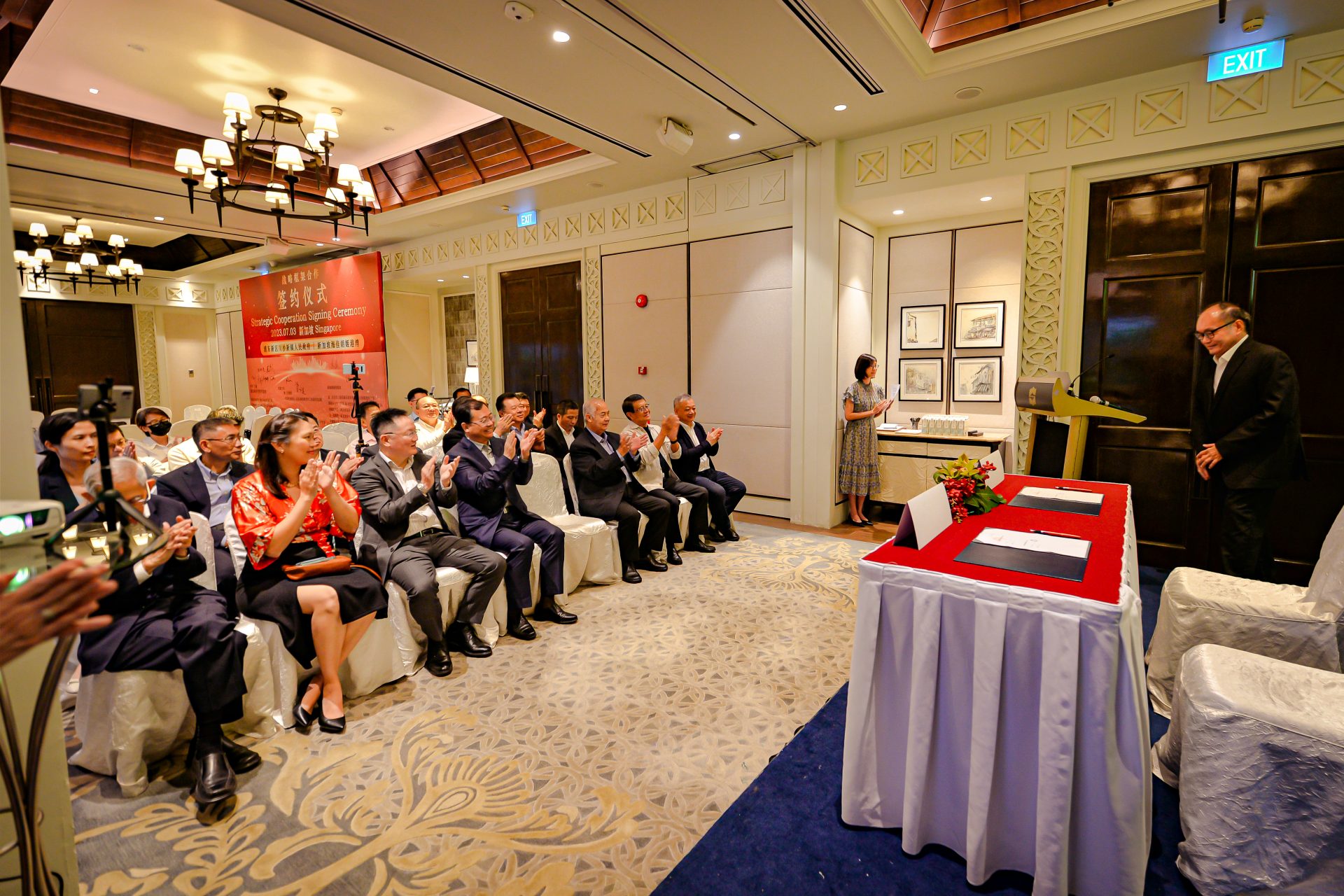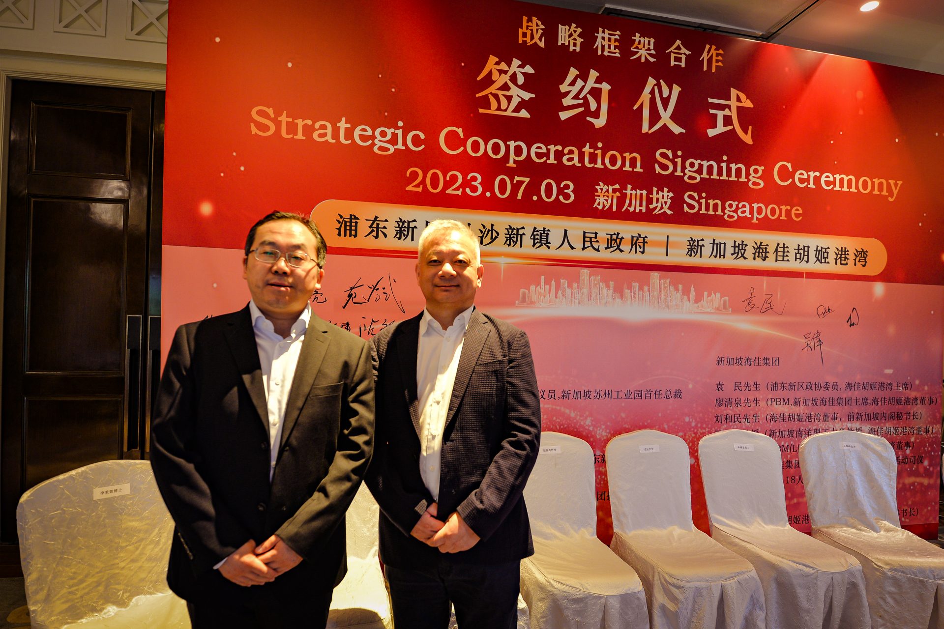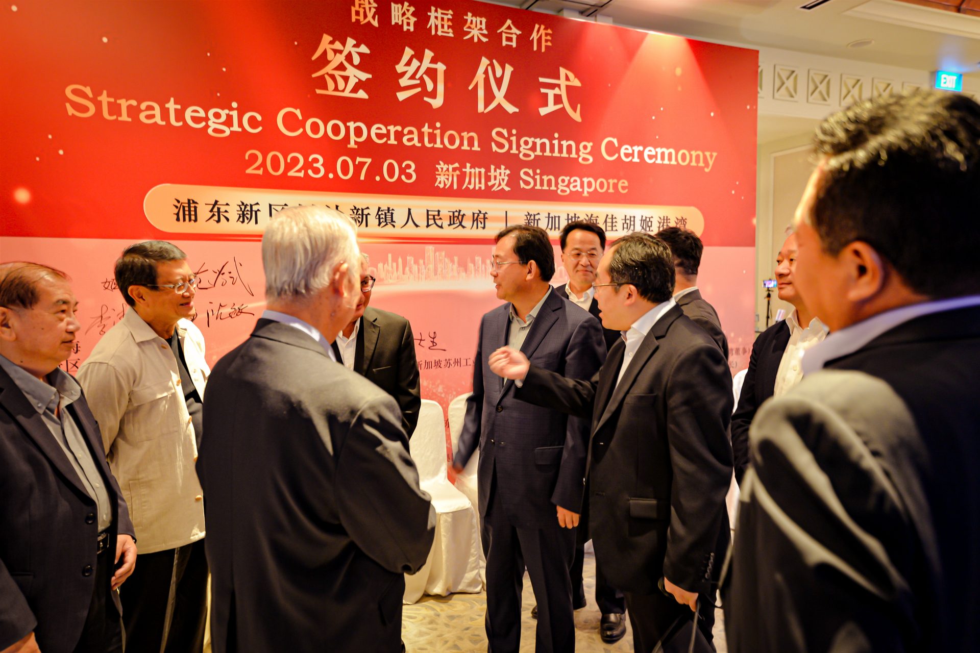 签署仪式于 2023 年 7 月 3 日在新加坡香格里拉大酒店举行,由浦东新区政协主席姬兆亮教授率领的上海高级代表团出席了签字仪式。与会代表包括浦东新区政协副秘书长吴敢峰先生,川沙新镇镇长沈敏先生,浦东新区商务委员会副主任苑学武先生,浦新区商务委员会处长李涛先生,和浦东新区商务委员会的许月华女士。