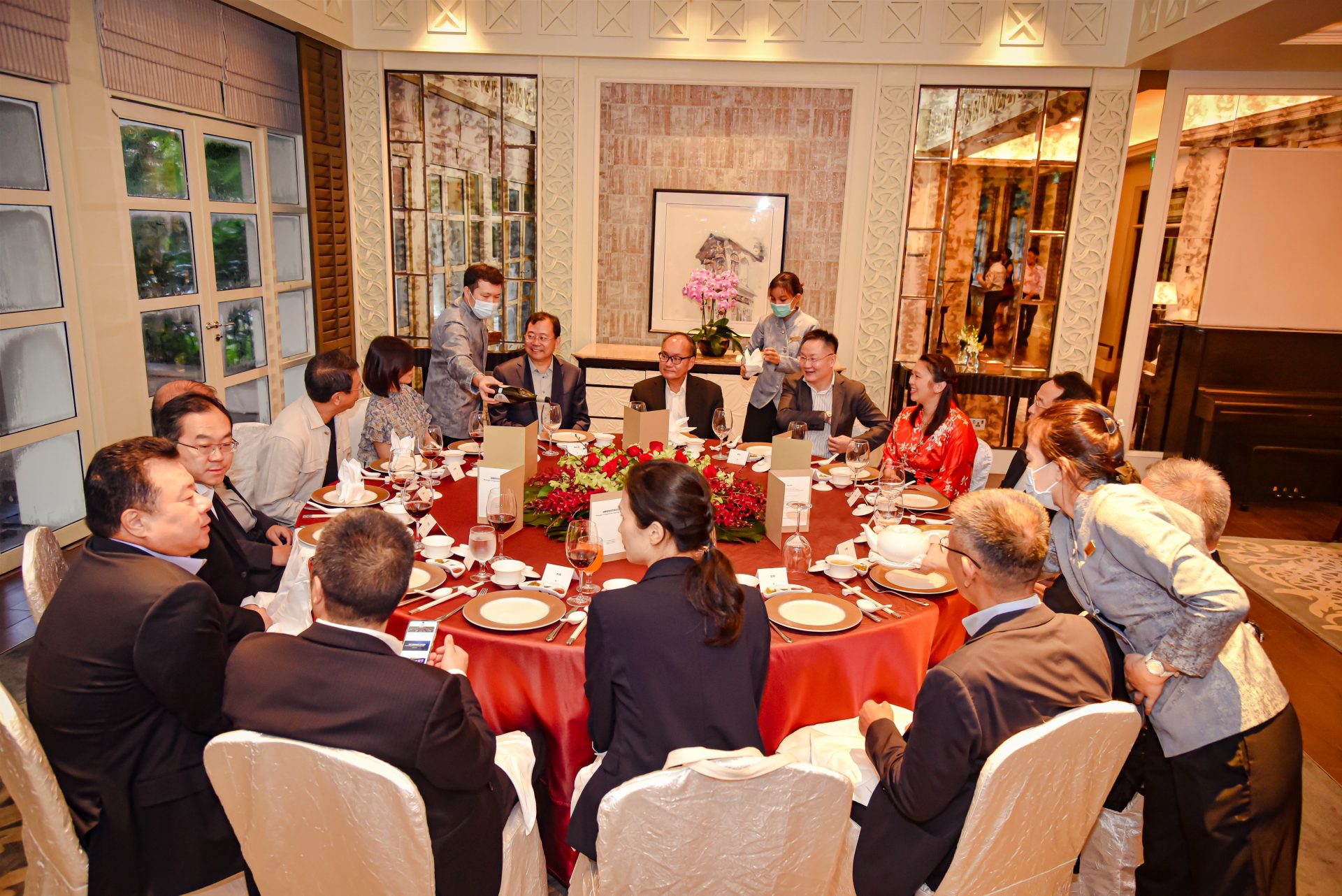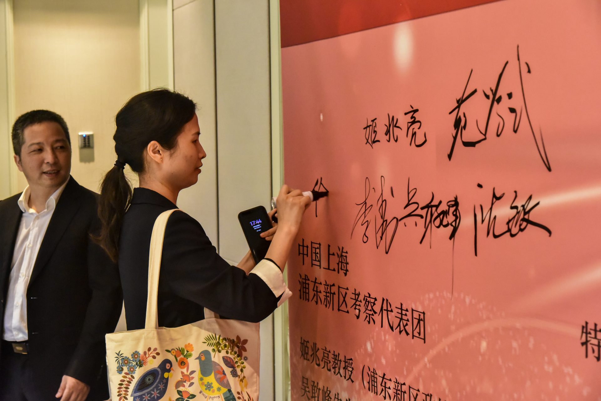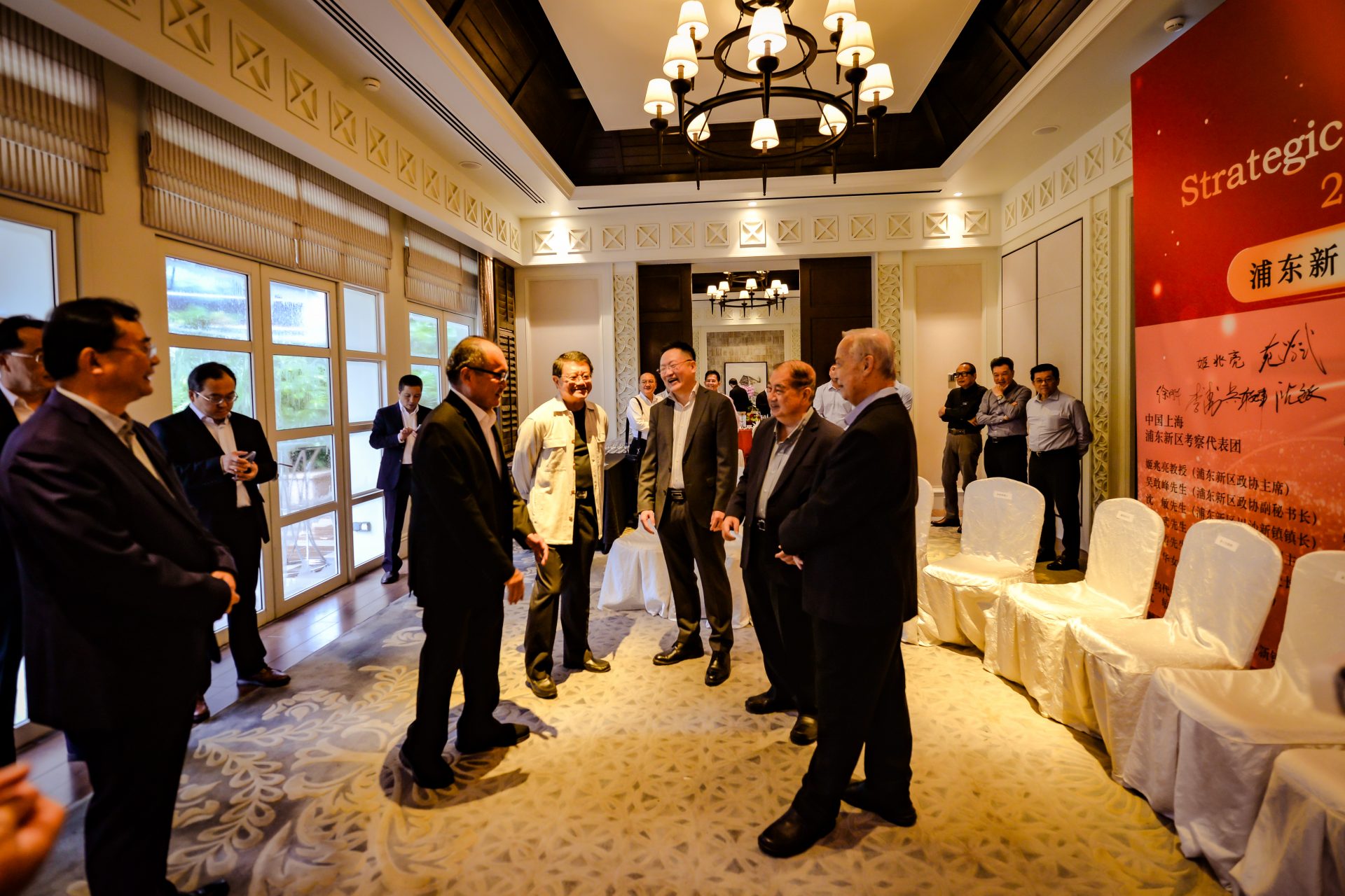 The delegates included notable figures such as Mr Wu Ganfeng, deputy secretary-general of the CPPCC Pudong New Area; Mr Shen Min, mayor of Chuansha New Town; Mr Yuan Xuewu, deputy director of the Commerce Committee of Pudong New Area; Mr Li Tao, division head of the Commerce Committee of Puxin District; and Ms Xu Yuehua from the Pudong New Area Commerce Committee.