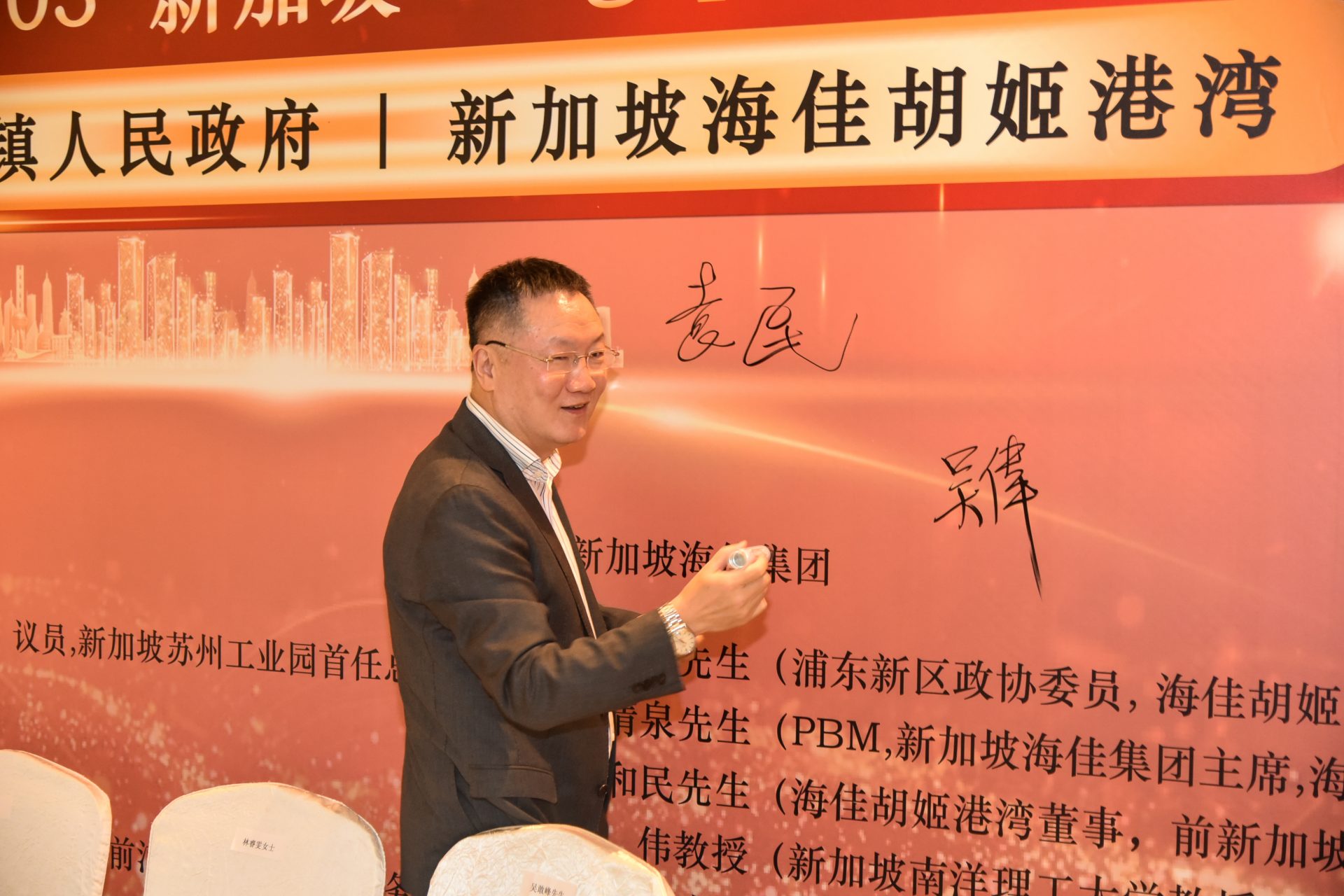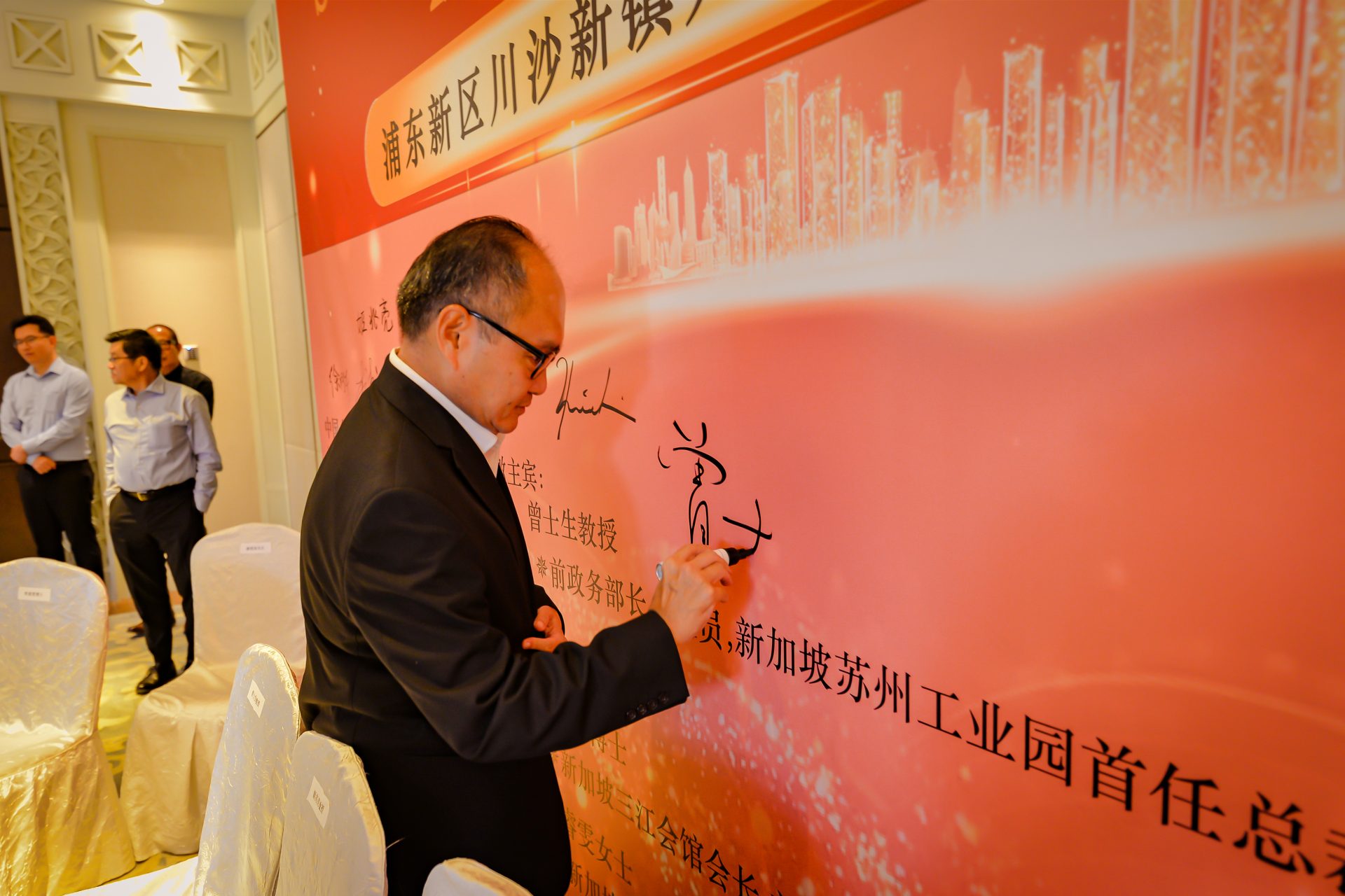 万众期待的签约仪式正式展开,由川沙新镇镇长沈敏先生和新加坡海佳胡姬港湾董事刘和民先生共同签署。姬兆亮主席、曾士生教授、袁民先生及廖清泉先生(海佳集团执行主席)四位知名人士担任官方见证人,突显该协议的重要意义,以及海佳胡姬港湾与浦东新区合作关系的新开端。