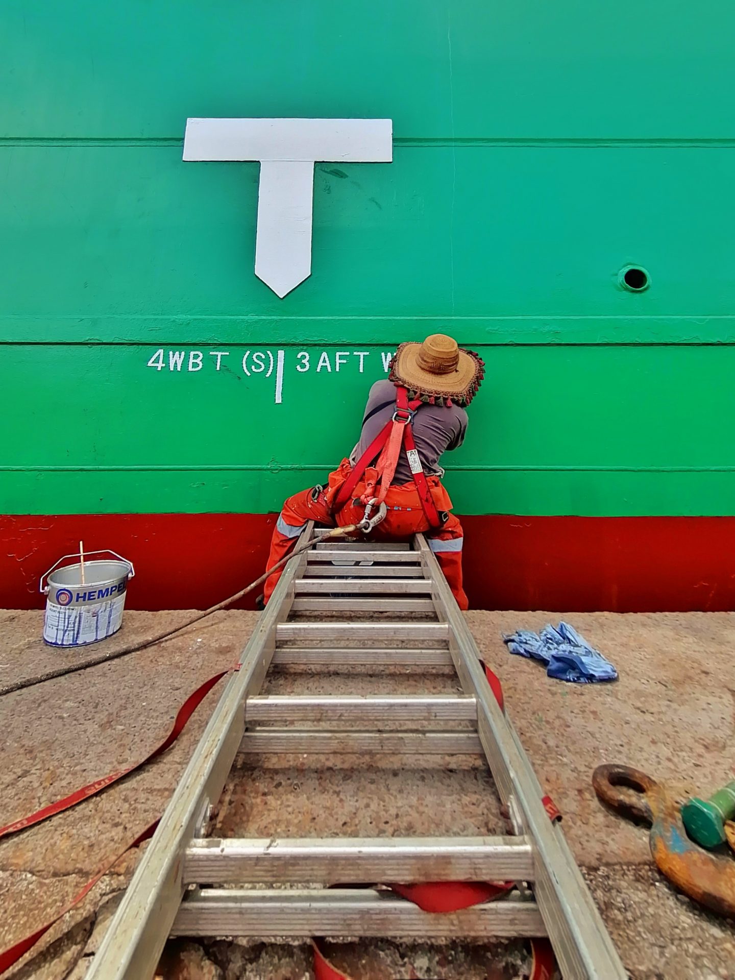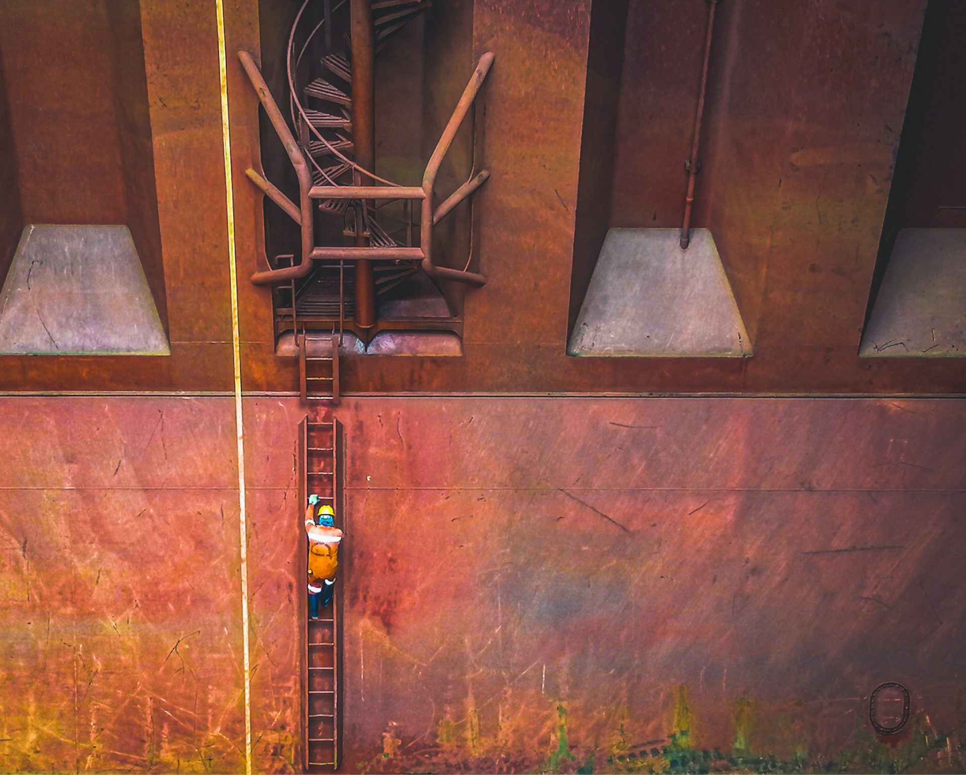 Able seaman Karlo Immanuelle D Garcia’s entry ‘Let’s colour our dreams’ shows a worker conditioning a cargo hold in Qinhuangdao, China, with pops of colour from bright red paint and yellow equipment. “Hard work pays off.”